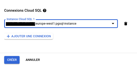 Il faut aussi via le terminal se connecter au proxy avec la commande T./cloud-sql-proxy deploy-project-django:europe-west1:pgsql-instance